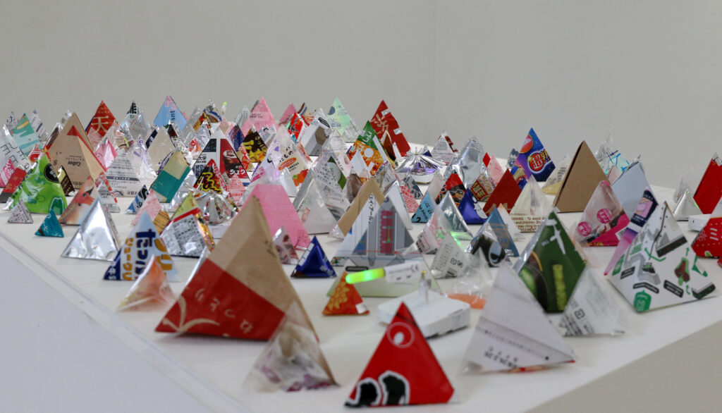 From March 2–6, I synchronized my life to the recycling center’s clock. Working from 8:45 to 17:00, I adopted their 50-minute cycles and strict 10-minute breaks, with a lunch break from 12:00 to 13:00. I used their rhythm as a formal constraint to “recycle” my own daily waste: sorting, handling, and transforming the packaging waste of my stay in Tenjinyama into sculptural objects with repeated shapes. In this process, time became a structure, repetition a method, and fatigue a form of reflection.